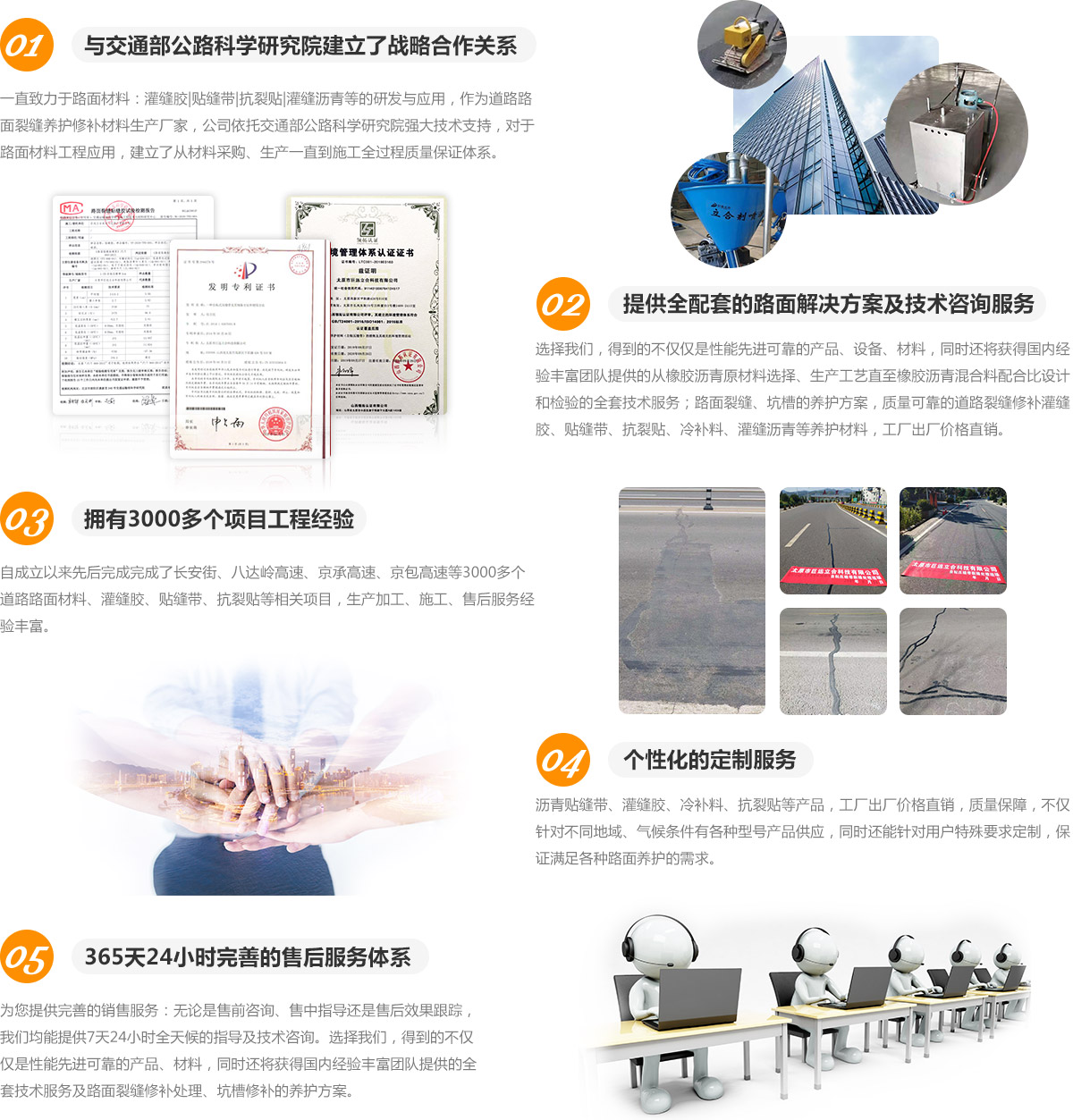 無損傷裂縫處理,無需開槽。產品經車輛自行碾壓后,縫內材料充實度,飽滿度狀況良好,同時可加強裂縫周邊的強度。